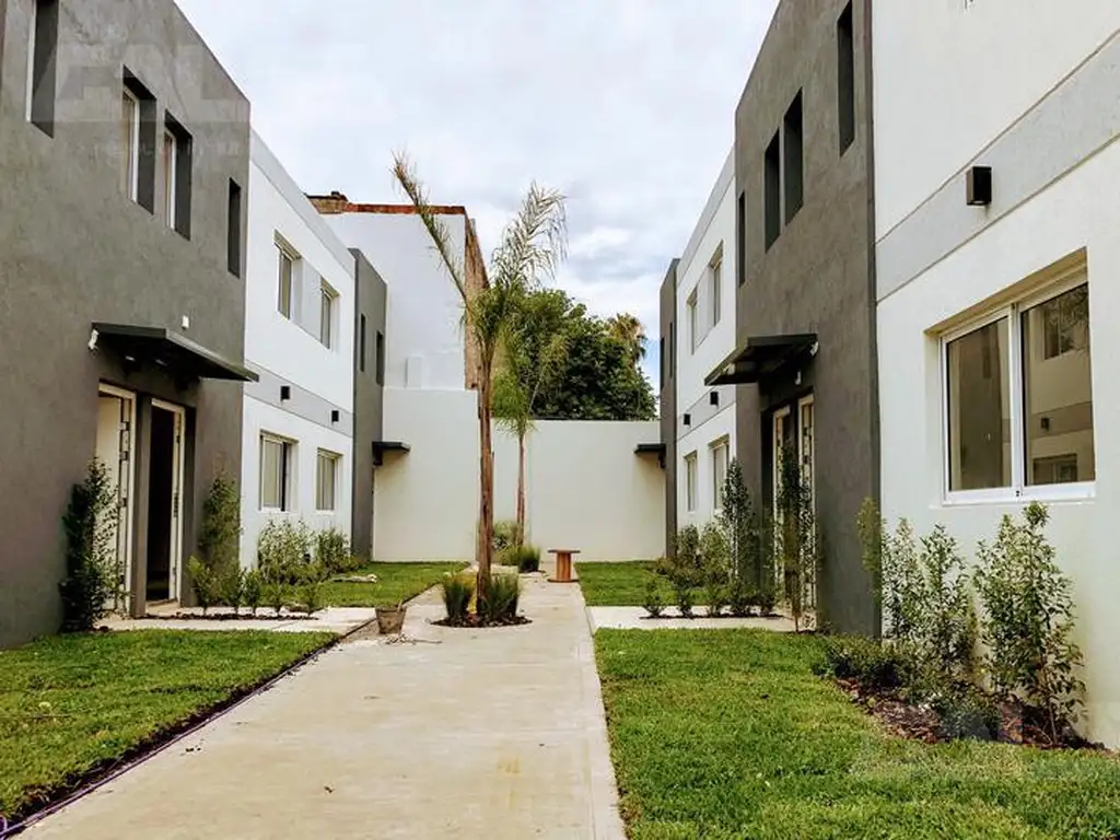 Características de Construcción: Loza en planta baja y alta. Escalera de loza. Tanque de agua individual pero abastecimiento es por una bomba sumergible y pozos compartidos. Excelentes Terminaciones en yeso en el interior y exterior con tarquini. Todas las aberturas serán línea rotonda 640. Puertas de ingreso tipo pentágono. Los pisos serán de porcellanato Ilva pulidos en living, cocina, baños, pasillo PA y patio semicubierto, pisos flotantes en los dormitorios. La calefacción será por estufa a gas y conexión para aire acondicionados. Los baños se entregarán con griferia FV y juego de loza cerámica marca ROCA o Ferrum. Las cocinas se entregaran con mesada de granito, bacha marca Johnson de acero inoxidable, mueble bajo mesada y alacena estilo minimalista, aparato de cocina de 4 hornallas a gas, termotanque a gas. Todas las instalaciones de agua y gas serán realizadas en materiales de 1ra calidad en termo-fusión.- Placards minimalistas en ambos cuartos. Instalación para cable e internet..- Todas las unidades contaran con parrilla en sus respectivos parques.- Fondo verde parquizado de 25 metros cuadrados.