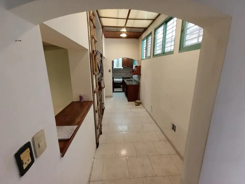 Al ingresar nos encontramos con un cómodo living-comedor con cocina integrada, equipada con muebles bajo mesada y alacena. Desde allí, un pasillo distribuidor conecta con un dormitorio en planta baja, un baño completo y la escalera de acceso a la planta alta.