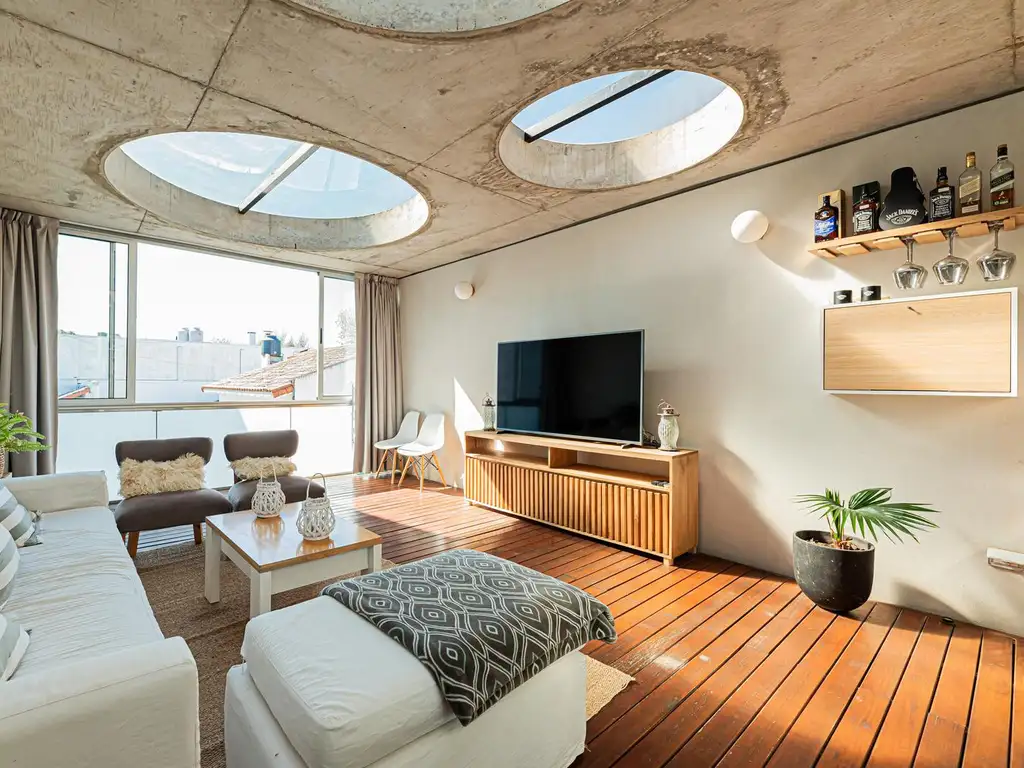 Planta baja: amplio livingcomedor, toilette de recepción y salida al jardín con orientación norte, muy soleado, equipado con parrilla ideal para reuniones y momentos al aire libre.