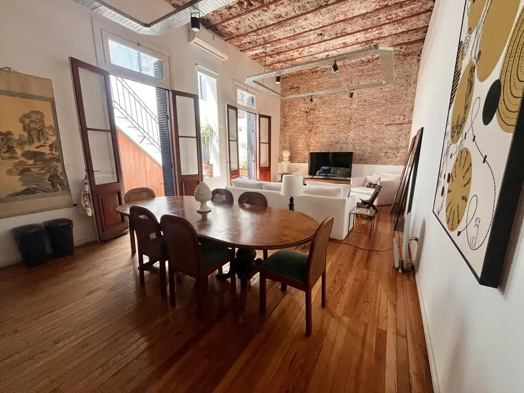 - Living Comedor integrado con la Cocina. Techos altos y ladrillo a la vista.