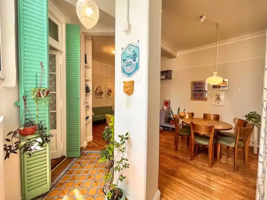 Cuenta con un agradable balcón ideal para disfrutar del aire libre, cocina con calefón a gas, pisos de pinotea originales en living y dormitorio —recientemente hidrolaqueados—, y cañerías de cocina y baño recicladas.
