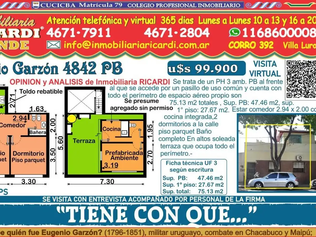 Podemos enviarle los 365 días del año fotos y planito de relevamiento con algunas medidas de ésta propiedad por WhatsApp ó por correo electrónico o Telegram