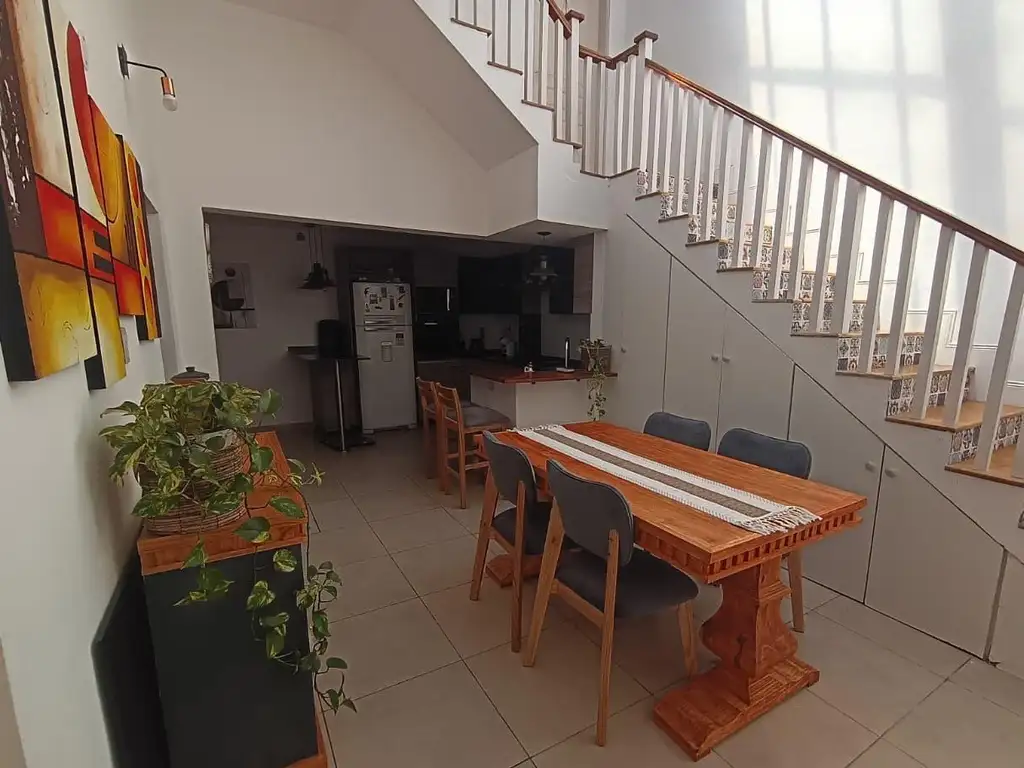 Ingresamos a este PH al frente por el sector de living (4,50 m x 2,50m) con la cocina integrada con muebles de cocina hechos a nuevo con horno empotrado a gas y anafe a gas, a un comedor diario (7,25m x 3,70m) con un cerramiento de aluminio y acrílico con techo móvil, que brinda luz natural a la propiedad casi todo el día a dos habitaciones que ventilan al frente (3,80m x 3,20m/4m x 3,40m), la primera con pisos de parquet y la segunda con pisos de cerámicos, y un baño completo en la planta baja con ducha escocesa. Por la escalera, accedemos a una tercera habitación (4m x 2,50m) que ventila a la terraza, y desde allí, por un tramo corto de la misma escalera a un baño completo (2,70m x 1,70m) con hidromasaje y a la terraza descubierta (4,30m x 5,40m), con un quincho con ventilación al frente.