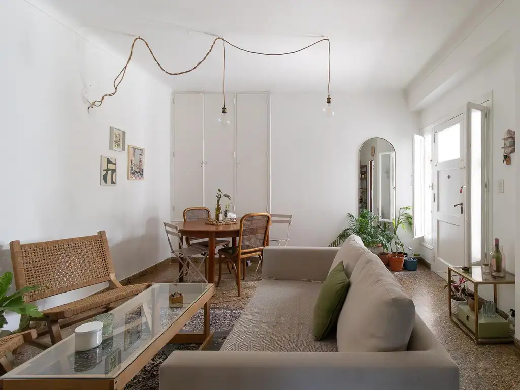 Living comedor con pisos de madera impecables, un placard de guardado de grandes dimensiones. El hogar otorga una calidez especial a este ambiente amplio y funcional. Cocina semi integrada hecha completamente a nuevo, luminosa y moderna. Cuenta con gas.