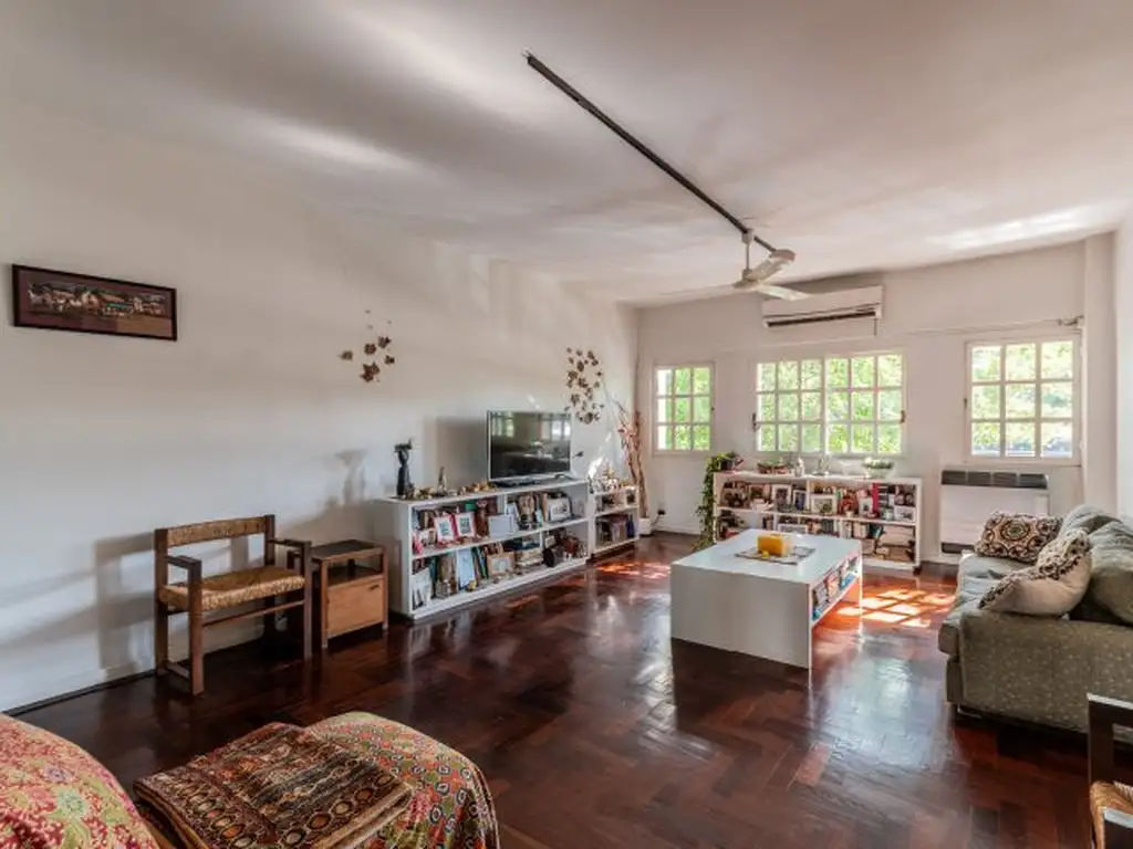 PH de seis ambientes con patio y terraza. Es un primer piso por escalera. En el primer piso: living, estar, cocina-comedor, 3 dormitorios, escritorio, 2 baños. Balcón y patio con lavadero. En el segundo piso: gran terraza. Sin expensas. No apto crédito.