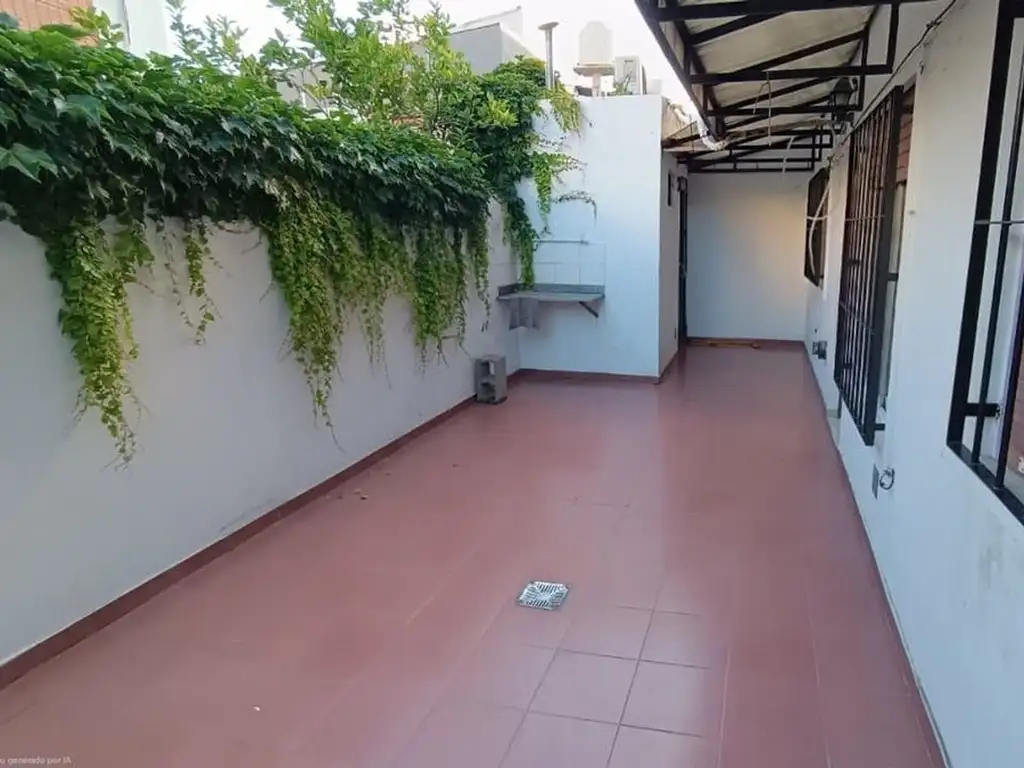 Al entrar a la propiedad, desde el pasillo techado de uso común, nos encontramos con un patio privado, con lugar para parrilla y amplia mesa.