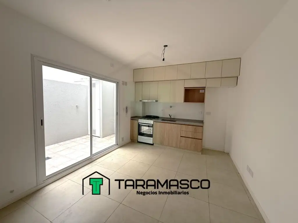 La unidad posee living-comedor con cocina integrada con muebles cocina. Salida desde living-comedor al patio que posee preinstalaciones para lavadero y cabina de termotanque. La habitación principal cuenta con placard de piso a techo, frente corredizo e interiores, cuenta con ventilación propia y preinstalacion de aire acondicionado y tiro balanceado instalado y funcionando. Desde la habitación accedemos al 2do Patio Privado. Baño completo con bañera.