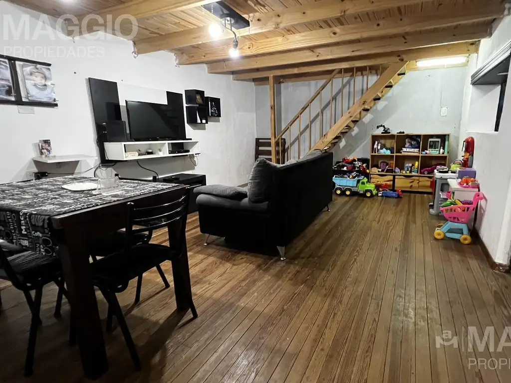 Distribuida en dos plantas, la vivienda ofrece un total de tres ambientes, incluyendo dos dormitorios, un baño completo, y un acogedor living comedor. La cocina, equipada para satisfacer las necesidades diarias, se complementa con un comedor diario y un altillo. Además, cuenta con un lavadero independiente y un patio descubierto de 10 m2, ideal para disfrutar de momentos al aire libre.