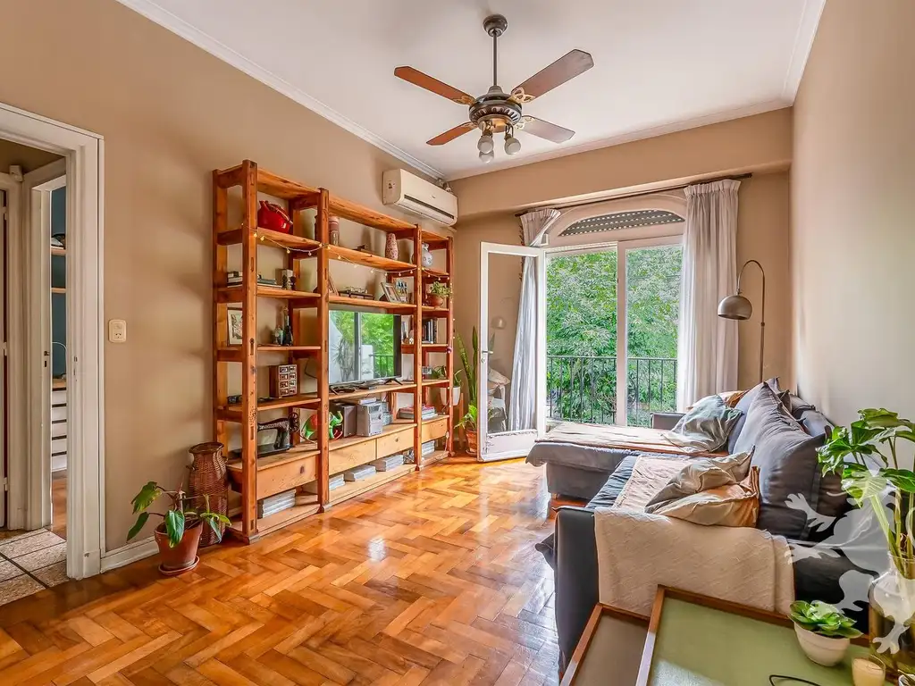Luminoso living con acceso a balcón al frente - Comedor con salamandra y ventilación a pulmón de edificio - Cocina con ventilación natural - Escritorio con acceso a balcón al frente / Posible dormitorio - Baño completo