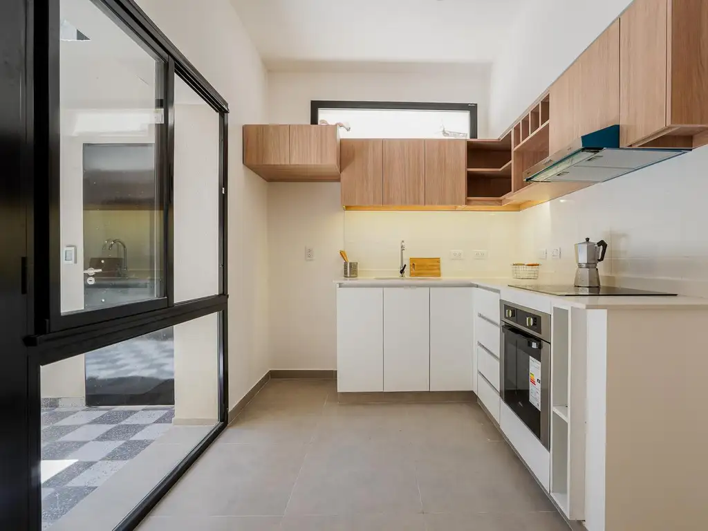 * Cocina comedor equipada con cocina vitrocerámica de calidad, campana con salida al exterior, amoblamientos modernos y funcionales, y todos los artefactos de iluminación instalados.