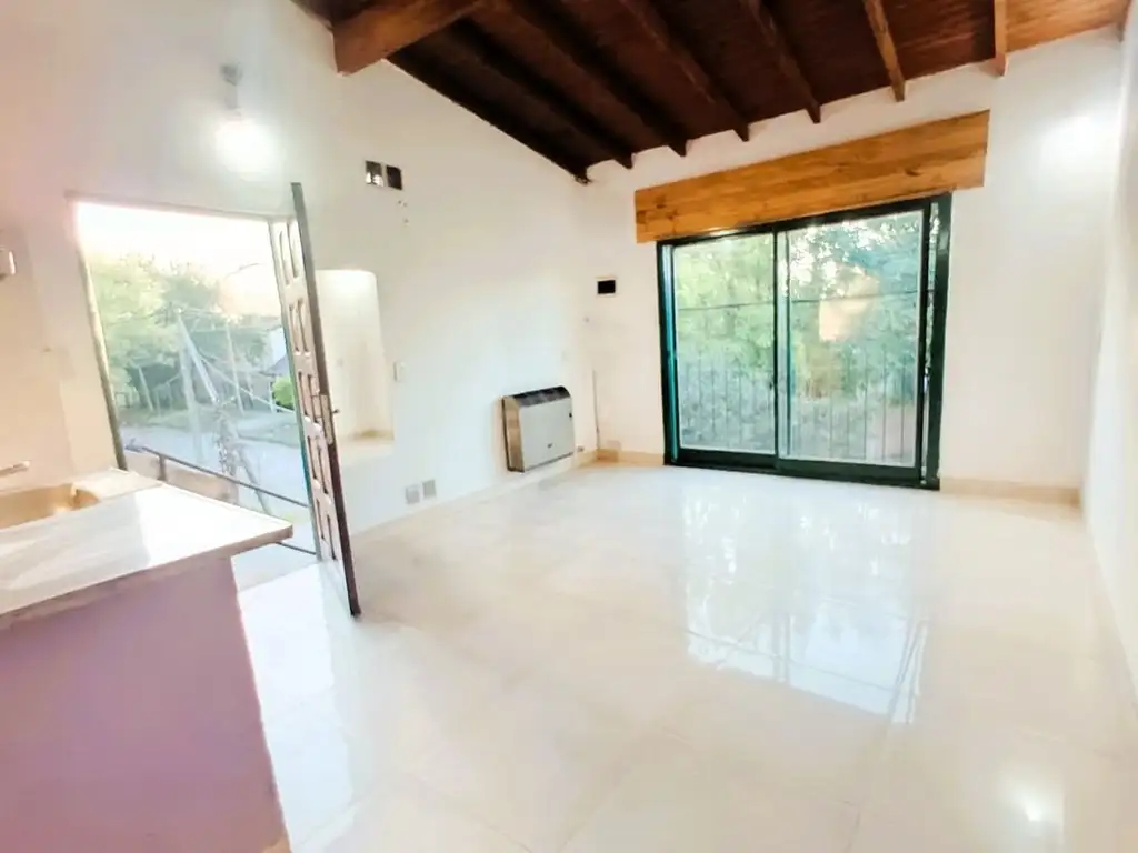 Al ingresar, nos encontramos con una amplia cocina-comedor que cuenta con un ventanal de piso a techo lo que le otorga a este ph una entrada de luz natural y ventilación.