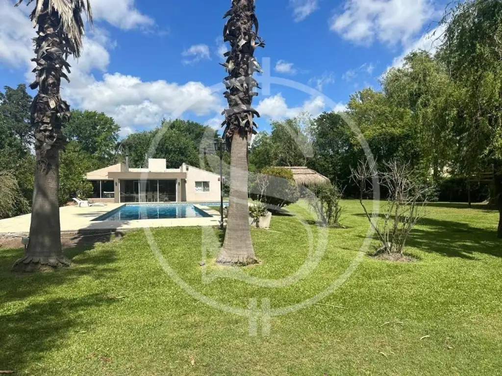 Parque con Quincho exterior semi cubierto de 8m x 4.5m. Fogón, sector juego para niños y pileta de 12m x 4m más sector espejo de agua. Mesa exterior de cemento con bancos.