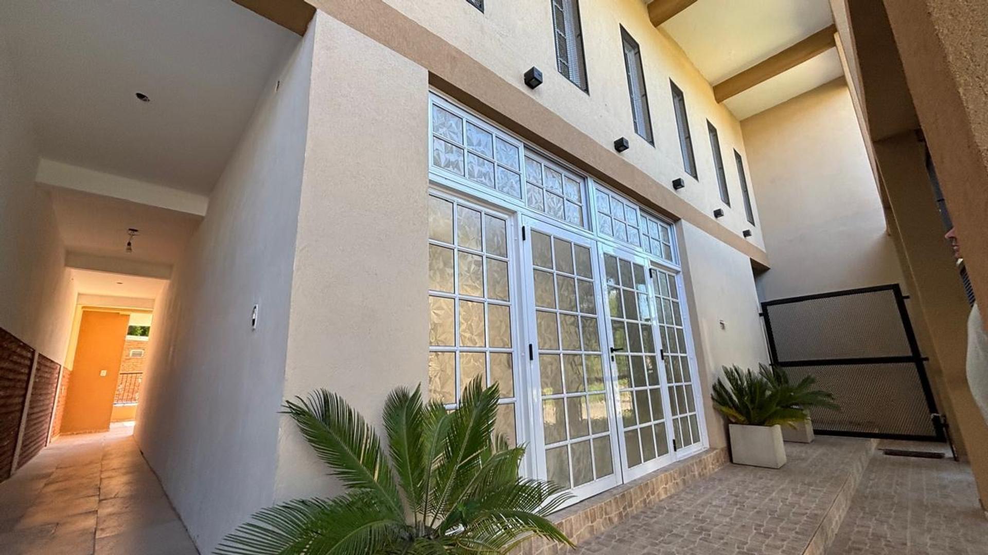 El salón tiene también en su frente izquierdo, un acceso por pasillo para pasar directamente a la parte trasera de la propiedad. Y en su frente derecho, acceso por escalera para a futuro construir departamentos con acceso independiente.