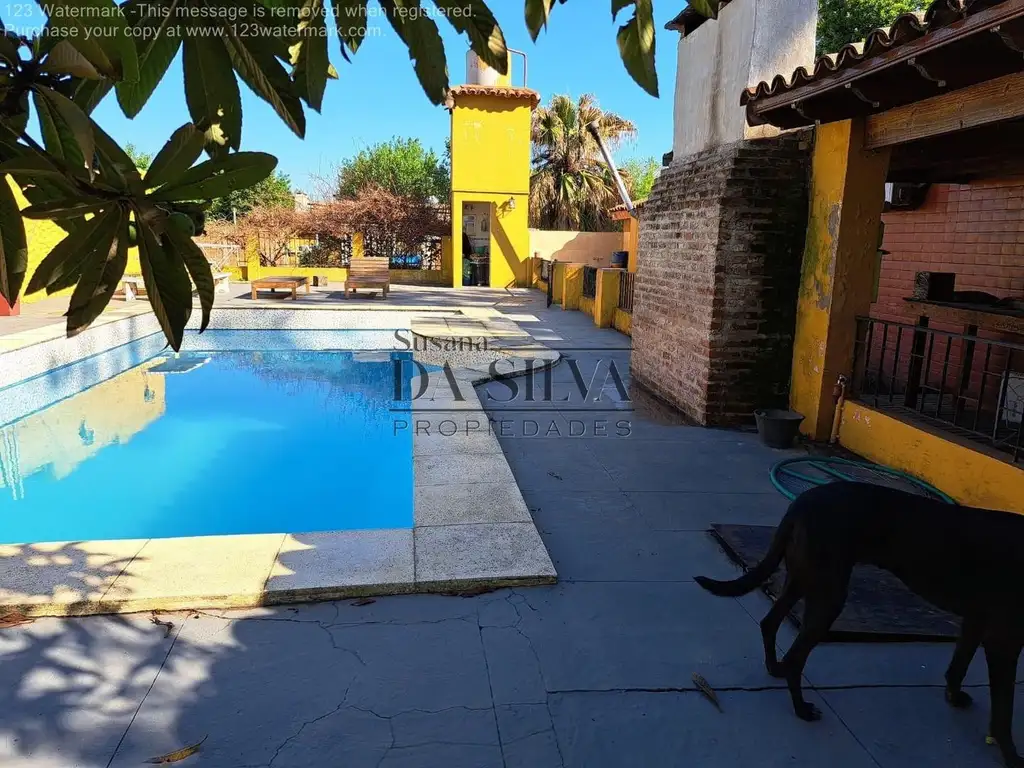 La vivienda cuenta con living con hogar, cocina semi integrada al enorme comedor, tres dormitorios, dos baños. Muy amplia y luminosa. Galería al parque con parrilla, patio con piscina y solarium.