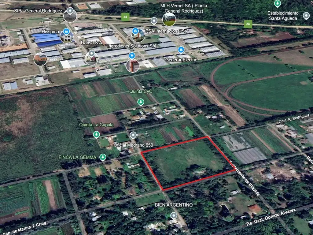 Se encuentra 400 metros de la calle corrientes (Calle de entrada al Polo Industrial General Rodriguez), que comunica directamente con el acceso oeste y con la ruta 24.