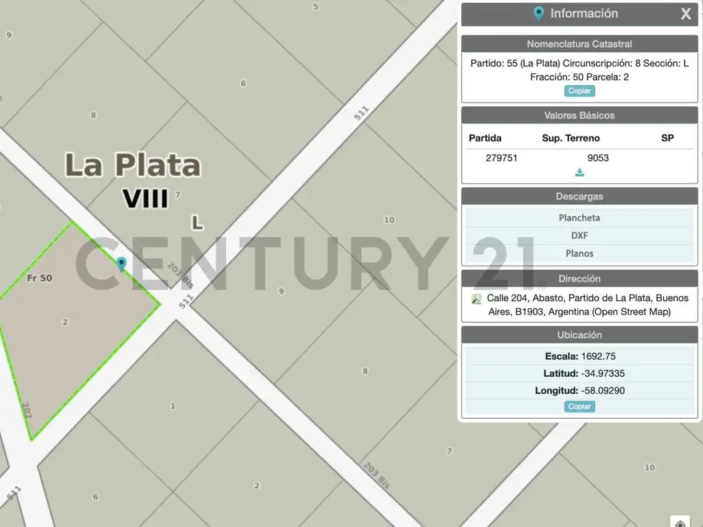 Lote en venta en Abasto de 9.053 m² (casi una hectárea) ubicado en 511 entre 202 y 203 bis, en la zona de Abasto – Estancia Chica, un entorno rural caracterizado por campos, cultivos, viveros y galpones.