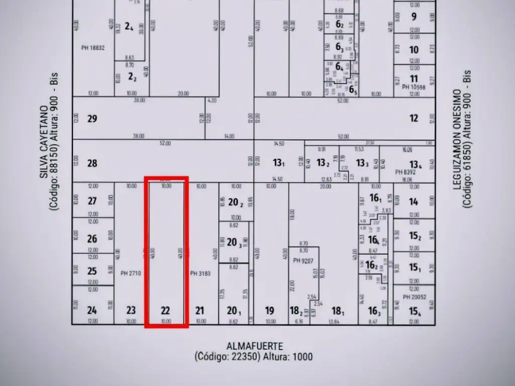 Long. Frente: 10 m