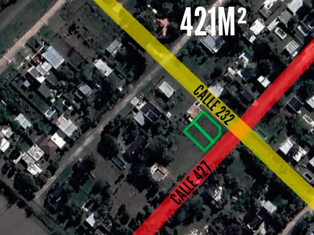 _ Terrenos en venta conjunta ubicados en calle 427 y 232 (El Peligro, Arturo Seguí, La Plata, Buenos Aires). Con disposición frente y orientación al este.