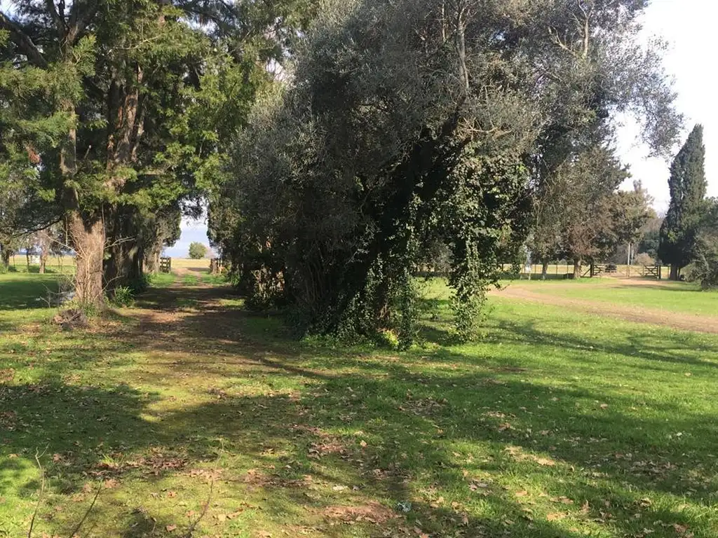 Tiene construcción, una casa, pileta y un galpón con base para movimientos de camiones.