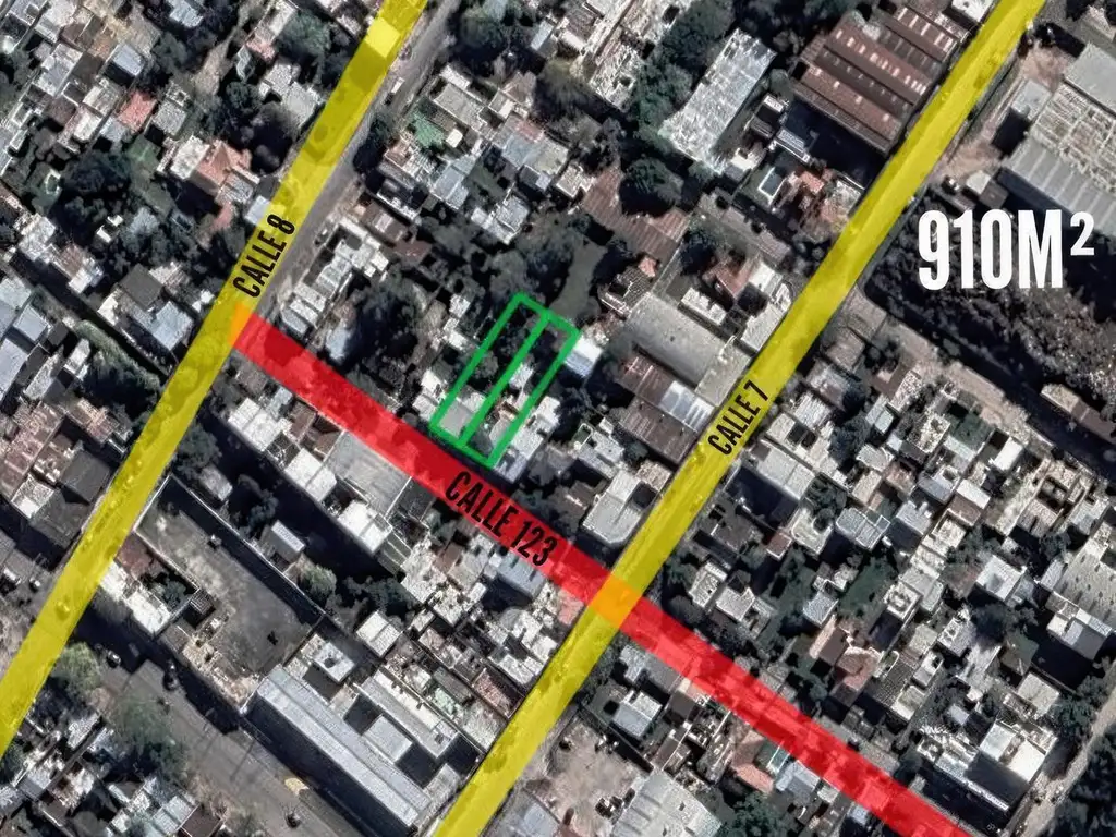 _ Terreno en venta ubicado sobre calle 123 entre 7 y 8 (Berisso, Buenos Aires). Con disposición frente y orientación al este.