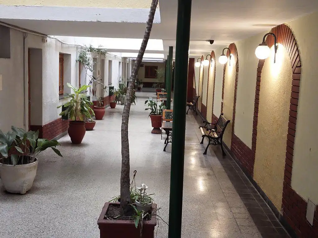 El edificio posee en su ingreso un ventanal vidriado a la calle, se ingresa directamente a zona de recepción y salón desayunador con subsuelo, y continua con un pasillo ancho que dirige a la zona de alojamiento.