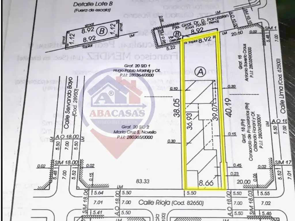 Excelente terreno en venta con doble salida, superficie total: 338,78 m2. Medida de frente a calle Rioja: 8,66 mts. Medida de frente a Pje Paroissien: 8,92 mts, el terreno tiene salida a ambas calles y no se encuentra afectado por centro de manzana, ideal para proyecto edilicio o como cocheras. Permite construir edificio de planta baja, 3 pisos y cocheras. Ideal Constructoras! Consulte las 24hs