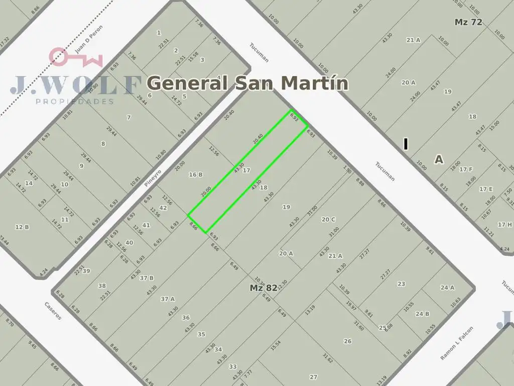 Lote de 6,93 metros de frente por 43,30 metros de fondo (300 metros cuadrados totales), Zonificación Rm (se puede construir hasta 12 dormitorios), tiene un inmueble a demoler de 2 ambientes.