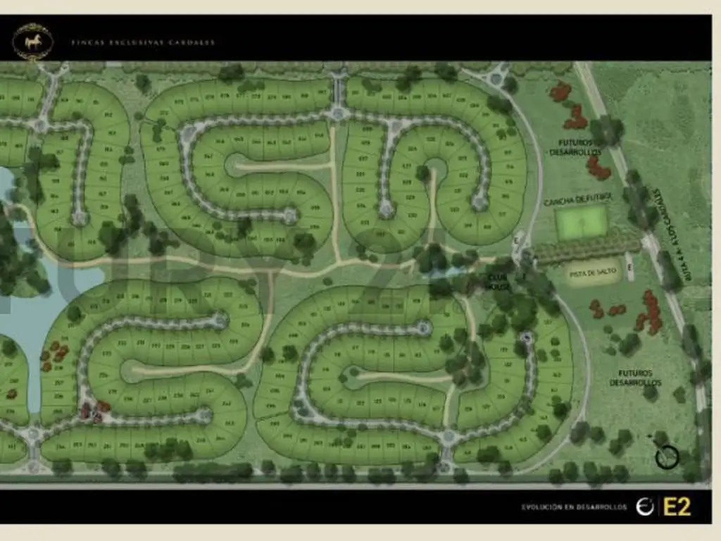 EL CAMPO, FINCAS EXCLUSIVAS CARDALES es un barrio cerrado en la localidad de Los Cardales, Provincia de Buenos Aires. Con un total de 430 excelentes lotes en venta, con superficies que van desde 1.000 a 1.300 mts2, con seguridad y servicios subterráneos, se encuentra emplazado en una estancia de 100 hectáreas con un gran bosque central, con laguna y frondosa vegetación que permite un contacto directo con la naturaleza. Cuenta con pista de salto, Club Hípico, cancha de football, restó, Barrio Ecuestre, Juegos para Chicos y Club House.