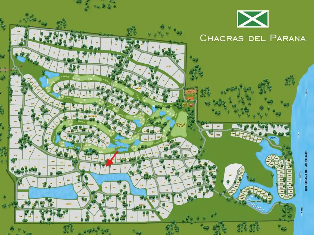 El lote 167 cuenta con una ubicación privilegiada frente a la laguna, lo que asegura vistas abiertas y un entorno natural único dentro del emprendimiento.
