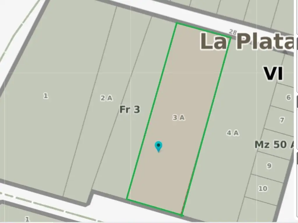 Ubicado en la calle 28 entre 442 y el Arrollo Carnaval.El mismo tiene 28 mtrs de frente por 100 mtrs de largo, con un total de 2800 mtr2, el contra frente da a la calle 28 bis. Ambas calles son asfaltadas, y tienen el servicio de luz y gas natural.
