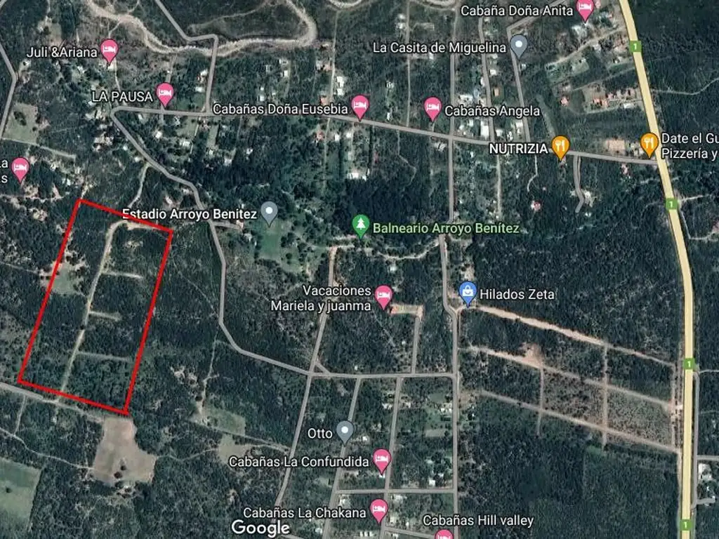 Se encuentran a 1200 MTS DE Ruta 1 - a 100 mts del Arroyo Benitez y a 2,5 km de la Plaza de Cortaderas