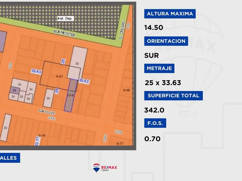Superficie: Amplio terreno de 815 m², brindando suficiente espacio para desarrollar proyectos de diferentes magnitudes.