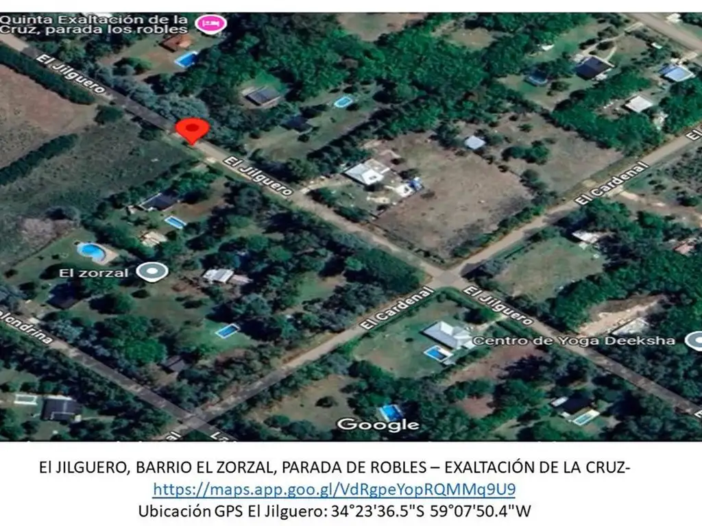 Desde Panamericana (Ruta Nacional Nº 8), tomar la bajada \"Parada Robles / Capilla del Señor / Exaltación de la Cruz\" (Km 72 aprox.). Seguir por Ruta 192 en dirección a Open Door. A solo 3 minutos, ingresar al Barrio El Zorzal (mano derecha) y tomar calle El Jilguero.
