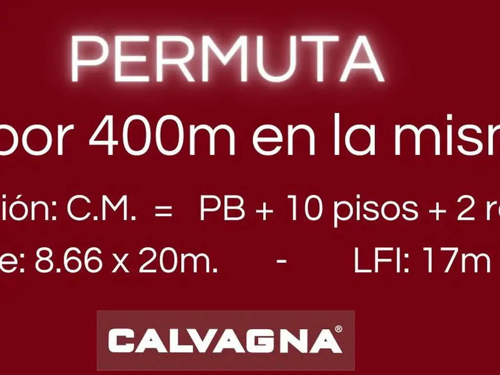 Es un lote de 8,66m x 20m, se pueden pisar 17m, y construir PB + 10 piso + 2 retiros + 3 o 4 cocheras. Son aproximadamente 1500m2 vendibles.