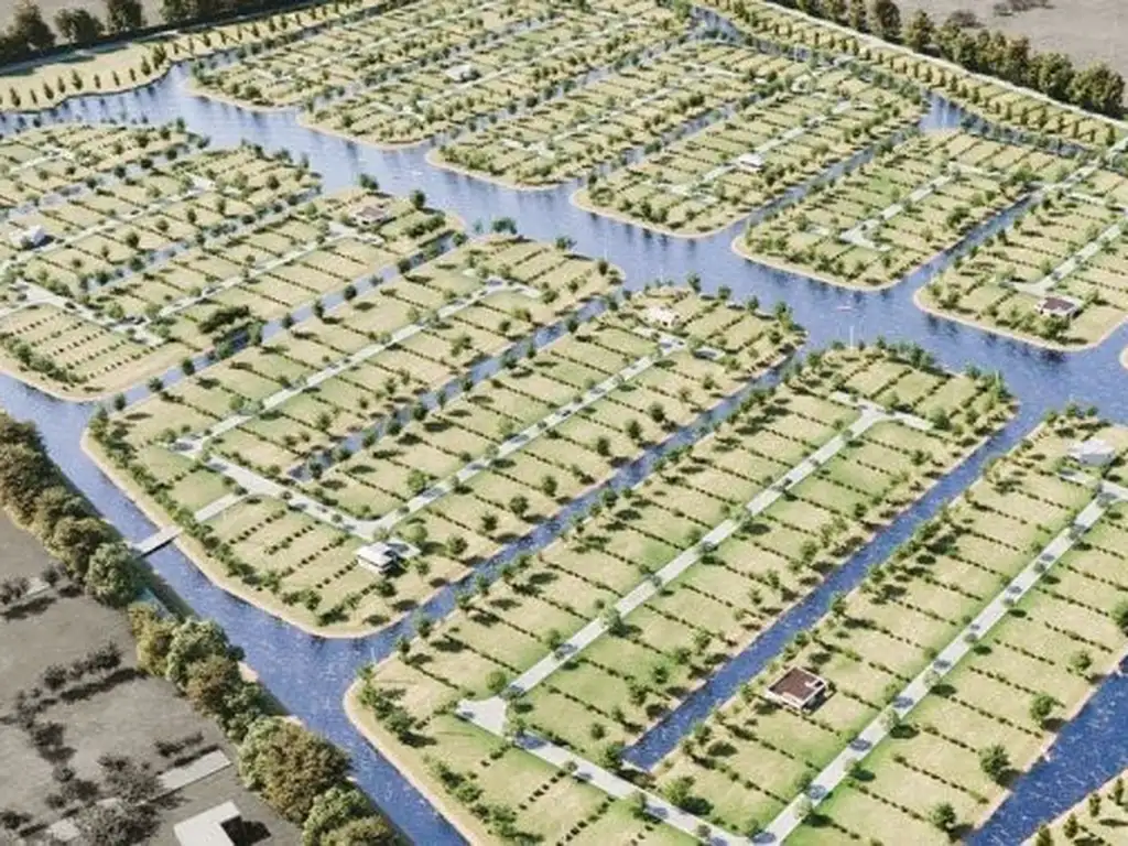 El masterplan propone canales que recorren todo el emprendimiento y forman ocho islas, donde cada lote disfruta de acceso privado al agua . Solo el 45% de las 50 hectáreas está destinado a los 409 lotes, priorizando amplios espacios verdes para caminar, relajarte y disfrutar al aire libre .