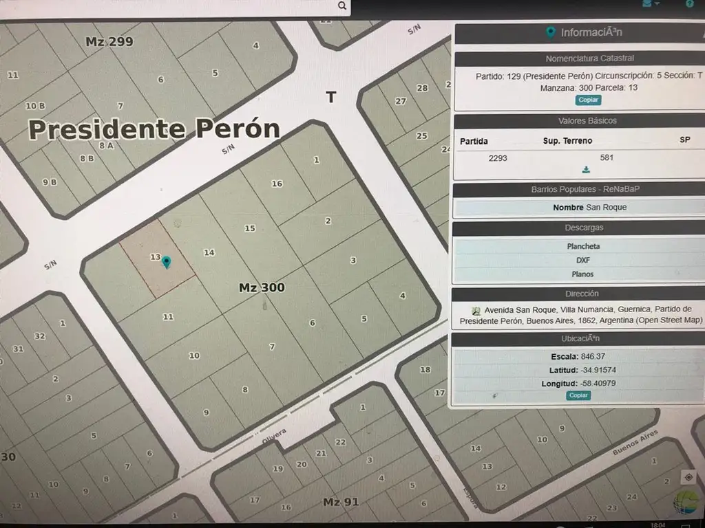 Venta en Guernica, Presidente Peron