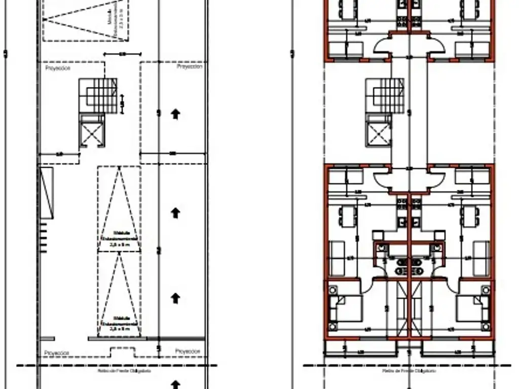 Posee planos con un anteproyecto de departamentos.