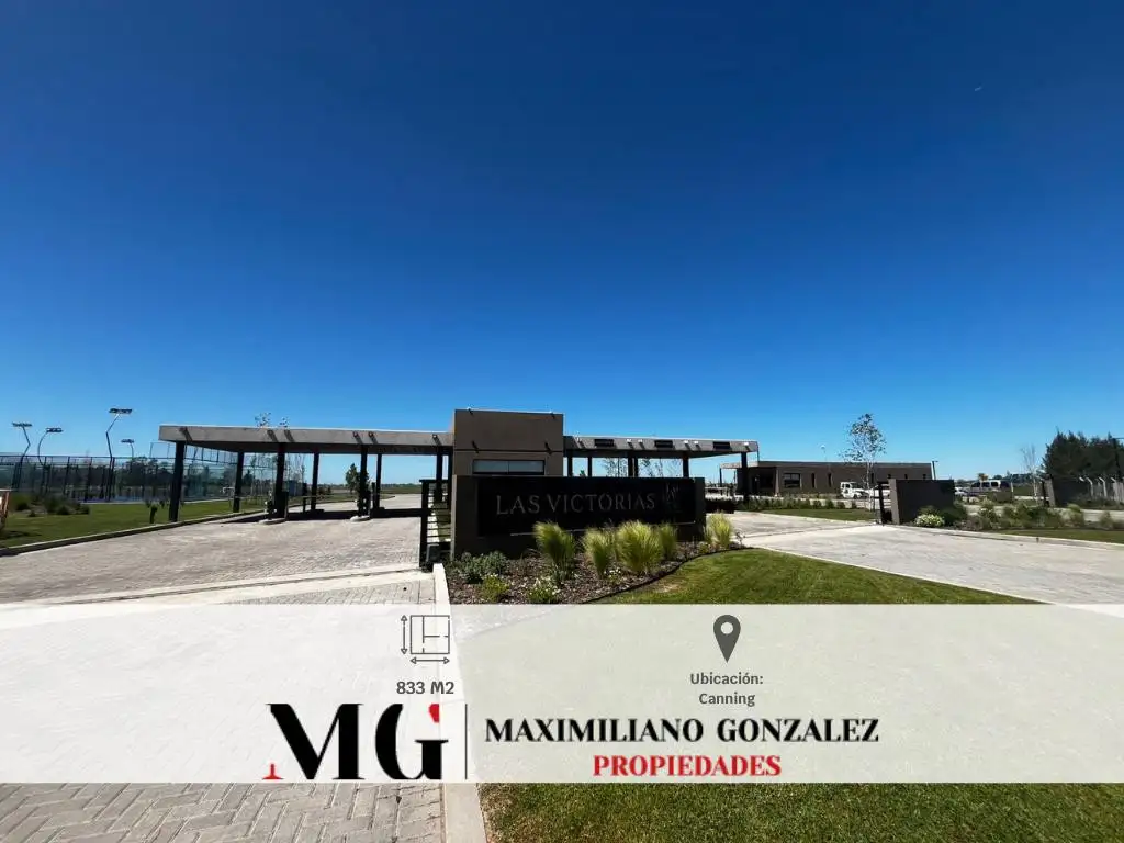 Excelente lote de 833 mt2 con fondo al agua en venta, ubicado en Barrio Privado Las Victorias.