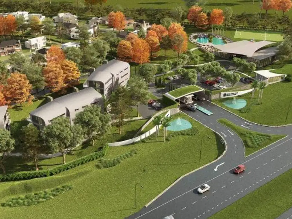 -Sendero verde peatonal que permite recorrer el desarrollo de un extremo al otro uniendo el área de Club House con los barrios, atravesando lugares de ocio y recreación: Estaciones Exteriores/Fijas de ejercicios y juegos infantiles.