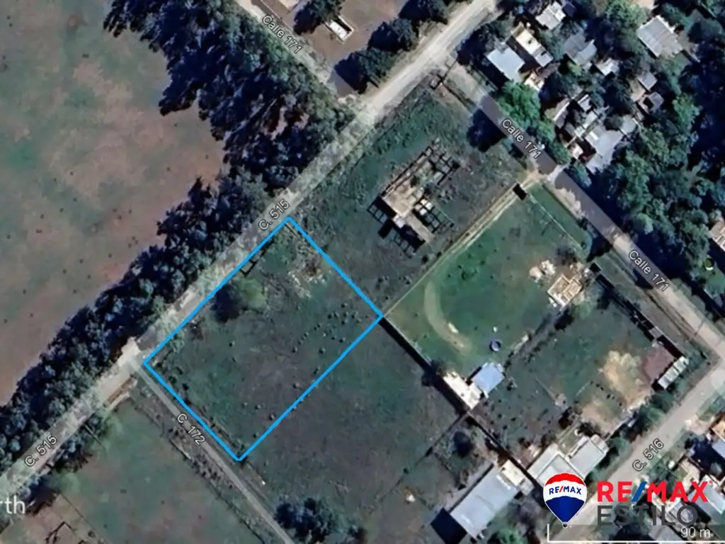 Lote en esquina de 59,65 m de frente sobre la calle 515 y 38,64 m sobre la calle 172.