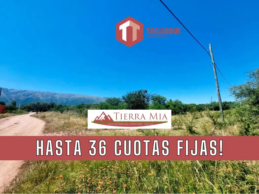 Desarrolla tu futuro y el de tu familia en esta urbanización ubicada en las puertas de Carpintería y a 7 minutos de Merlo. Lote en esquina, con doble frente y una superficie de 1.091,80m2 como base de tu proyecto, en un ambiente tranquilo y paisajístico. Hermosa arboleda, servicios y escrituración inmediata. FINANCIACIóN EN CUOTAS! úLTIMOS LOTES - ESTA ES TU OPORTUNIDAD!