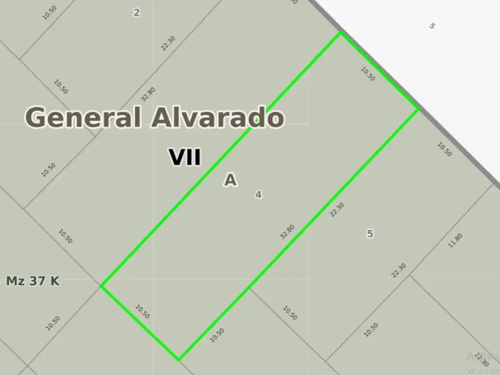 Ubicado en Barrio Los Pinos sobre calle 5 entre calles 68 y 70. Cuenta con una superficie total de 344m2 aprox. distribuidos en 10.5 metros de frente por 32.8 metros de fondo.