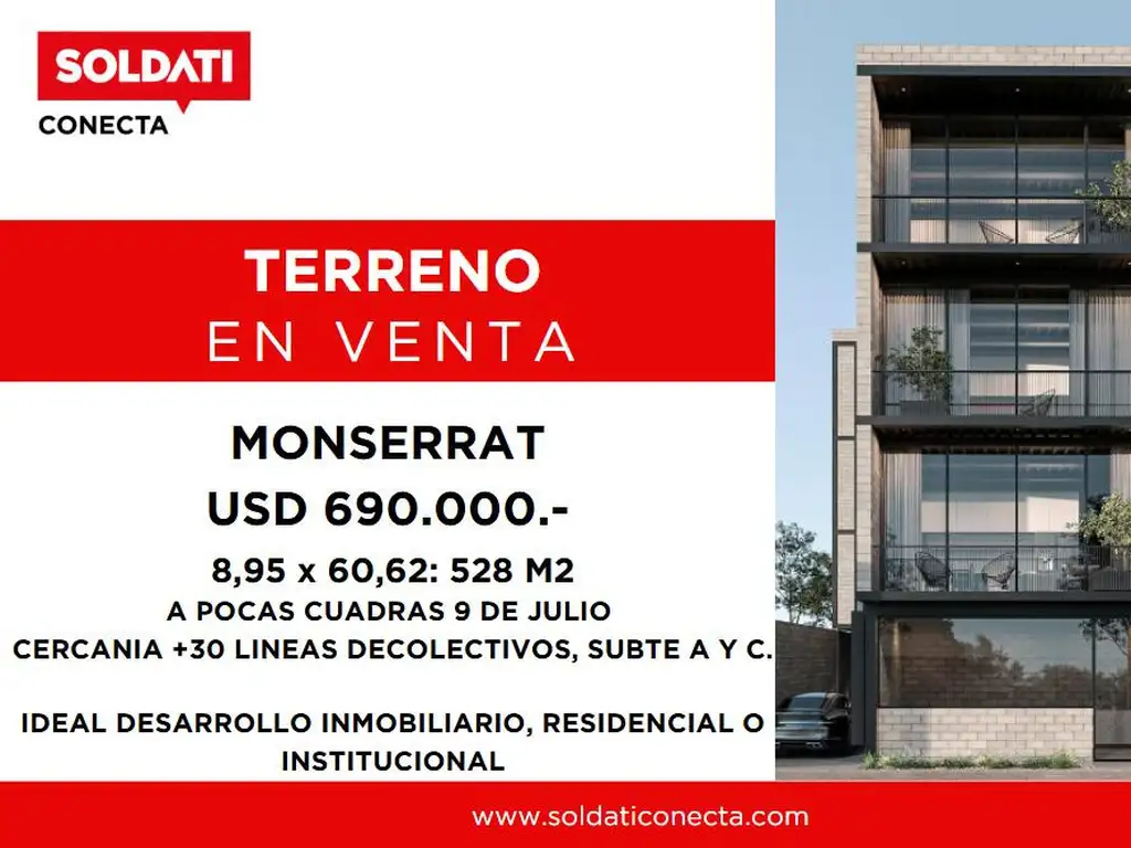 Lote en venta en ubicación estratégica: 8.95m de frente x 60.62m de fondo, a solo 2 cuadras de Av. 9 de Julio.