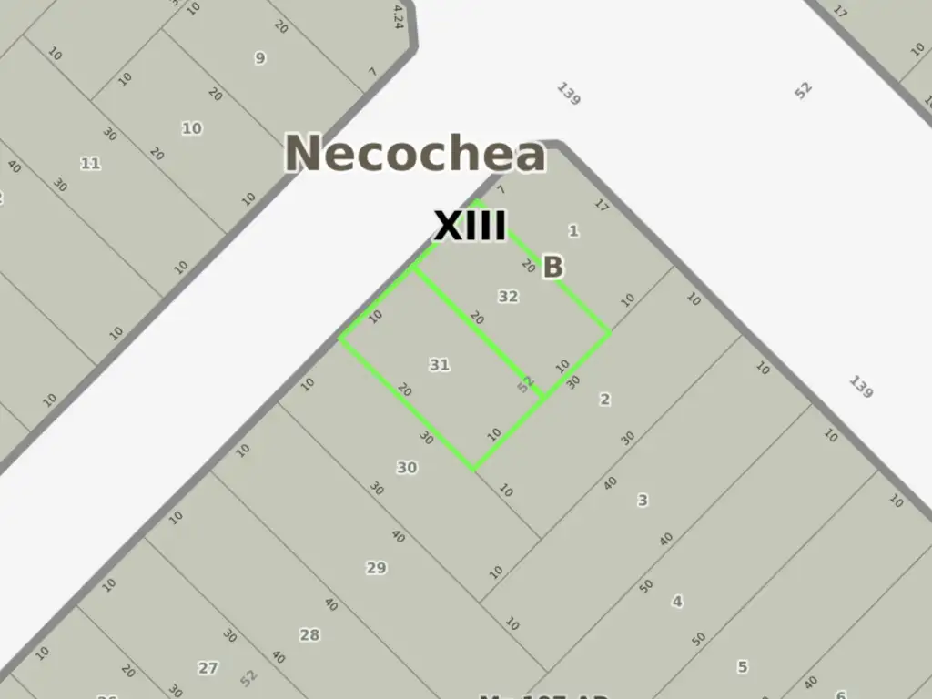 Dos terrenos ubicados en la calle 52, entre las calles 139 y 141, con dimensiones de 10 metros de frente por 20 metros de fondo cada uno.