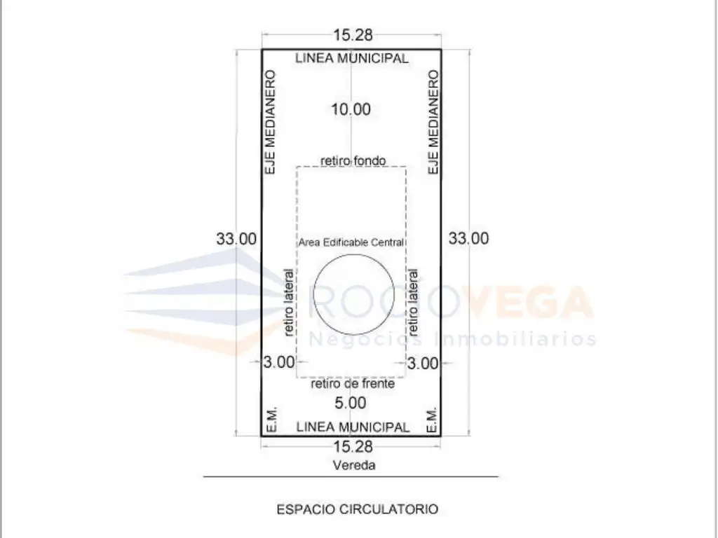 Long. Frente: 15 m