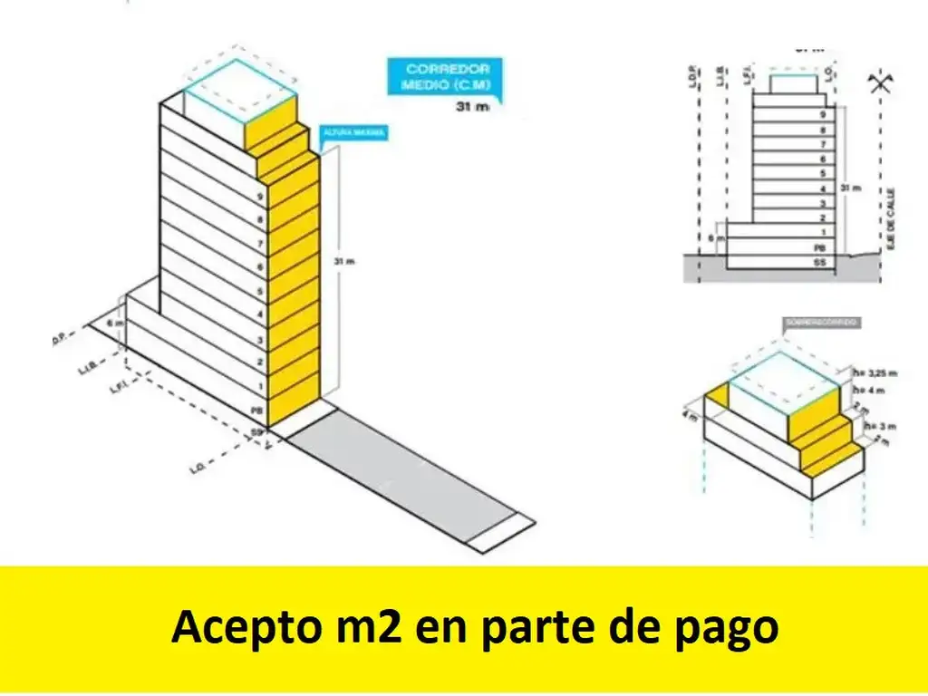 ZONIFICACION R2A2 CORREDOR MEDIO ALTURA MAXIMA DE 31 M SUP.CONSTRUIBLE 3100 M2