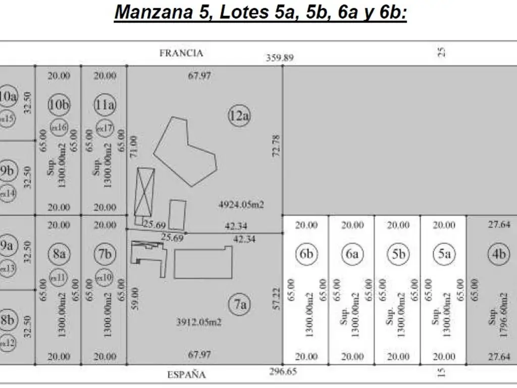 Manzana 5, lote 13a: 1.300,00 m2, frente 20 m., Francia e/ Suecia y R. 210: u$s45.900.-