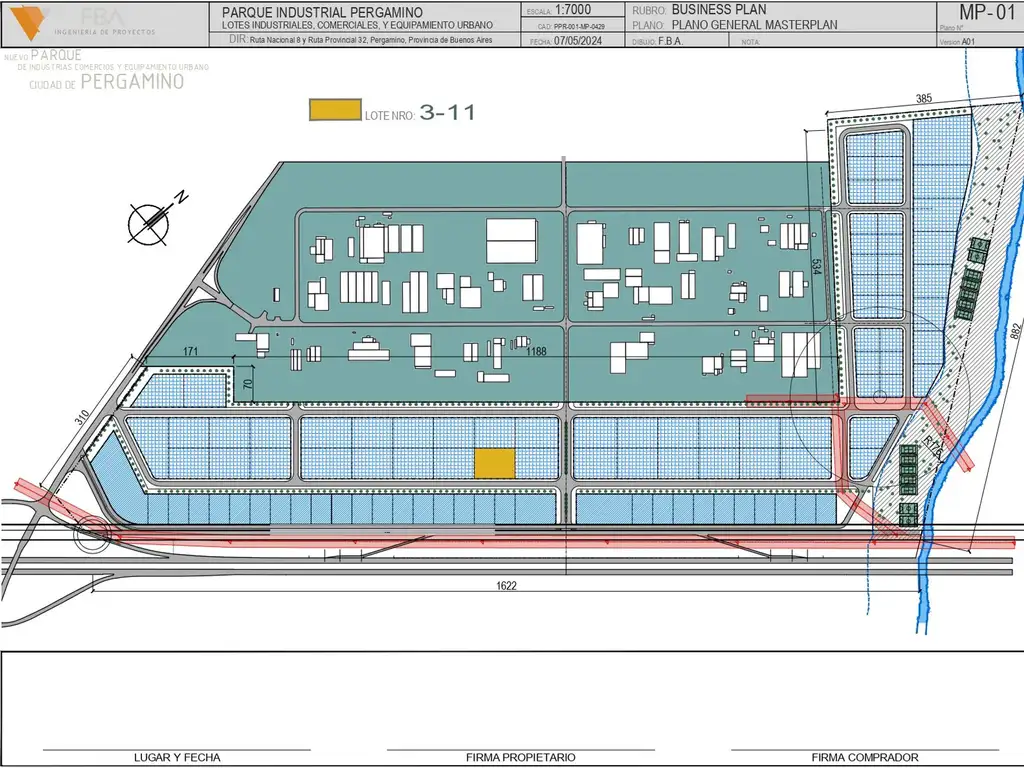 Este nuevo Parque Industrial emplazado en 64 hectáreas de extensión, con un frente de 1500 metros sobre la NUEVA AUTOVIA NACIONAL N° 8 y lindero con el actual Parque Industrial de Pergamino lo convierte en el desarrollo industrial mas importante del Nor-oeste de la Povincia de Buenos Aires. Conformando la sumatoria de ambos, una superficie total de 150 Hectareas!