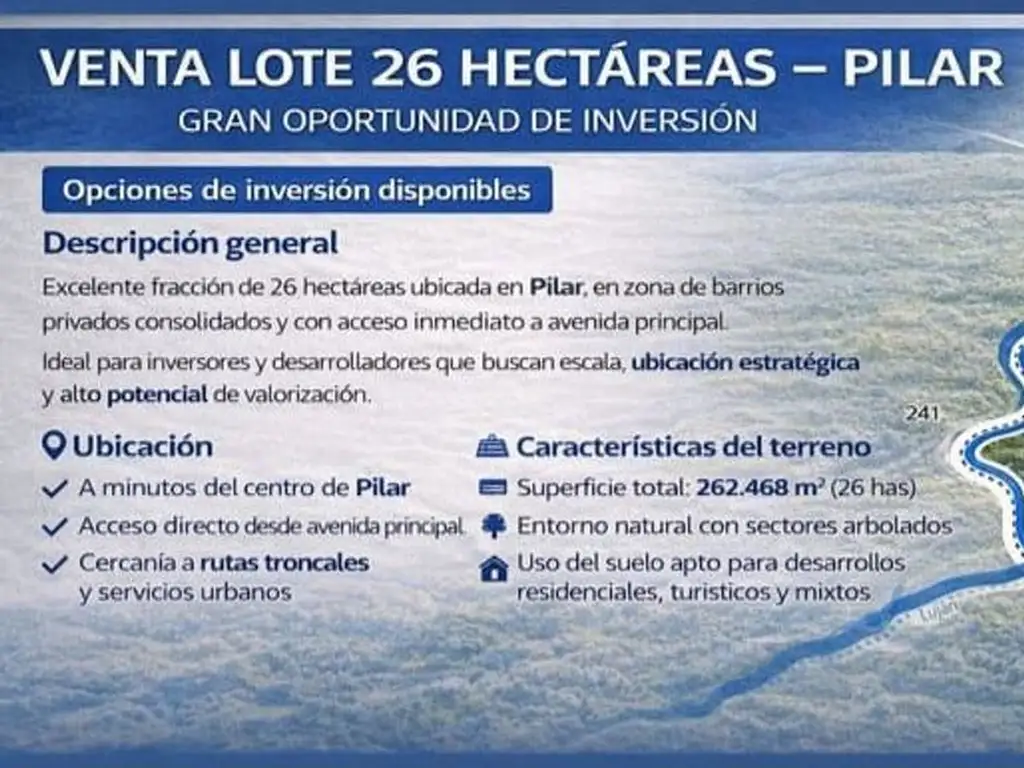 VENTA LOTE 26 HECTÁREAS – PILAR | GRAN OPORTUNIDAD DE INVERSIÓN
