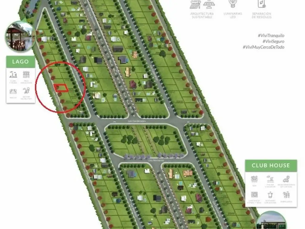 El lote está ubicado sobre calle Los Colibríes, entre calle Las Calandrias y el Lago. Lote 59 (hoy modificado como Lote 182).